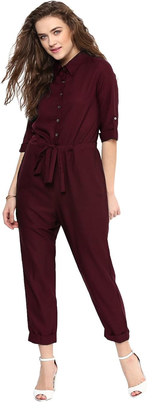 Made from smooth, wrinkle resistant crepe fabric, this jumpsuit is sure to look trendy. It is color bleeding resistant thereby making it long lasting. Sweat absorbent armpit lining is used to keep away underarm stains.